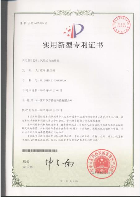 實(shí)用新型:風(fēng)扇式電加熱器專(zhuān)利303.9片